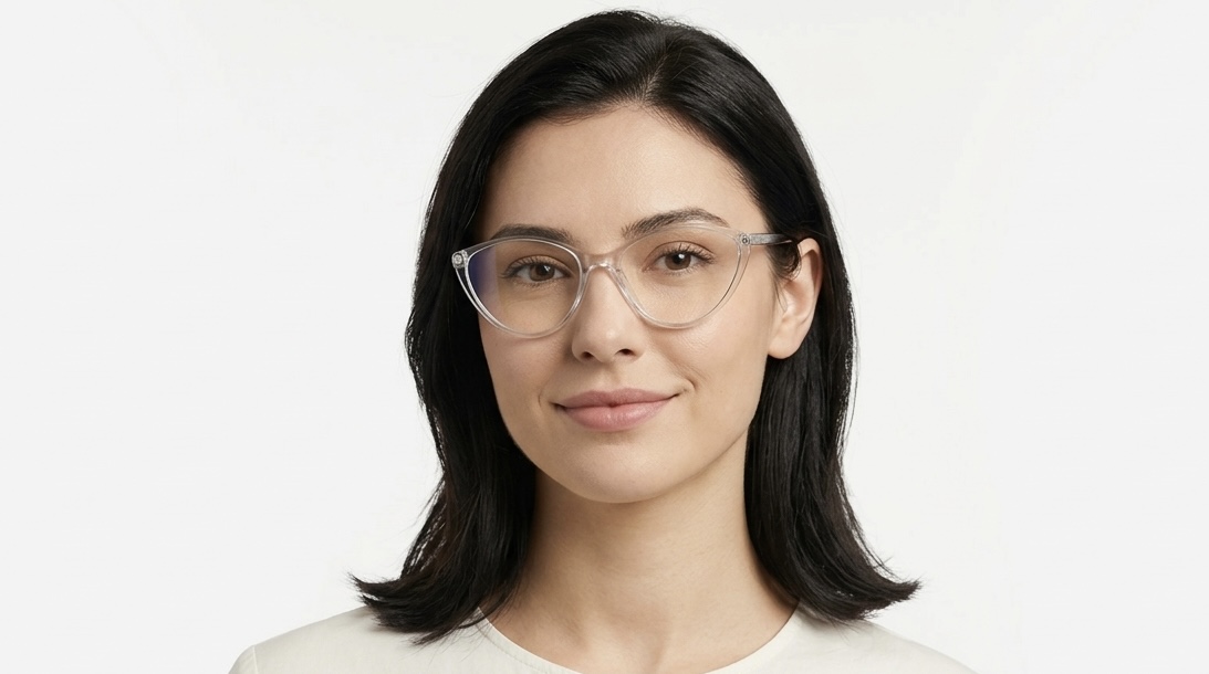 Crystal Elegance: Modern Cat-Eye Transparent Frames
