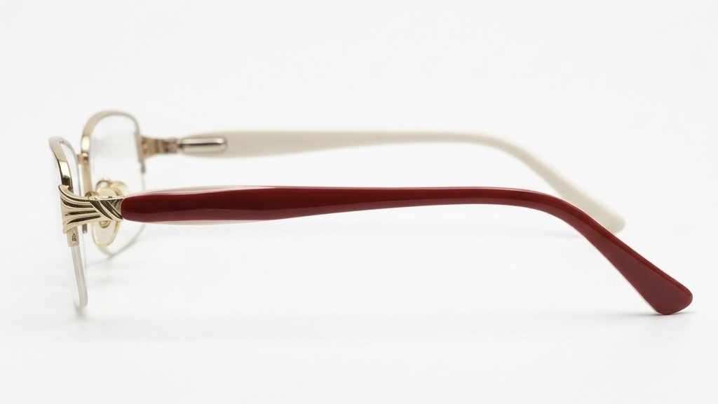 The Executive Chic: Gold-Tone Half-Rim Frames with Crimson Accents