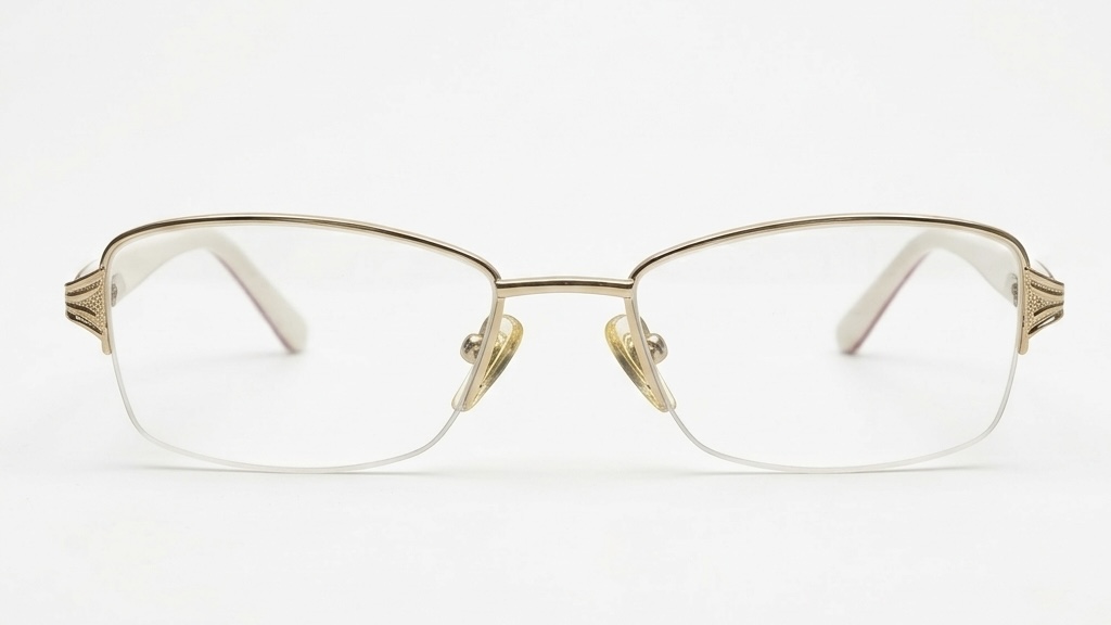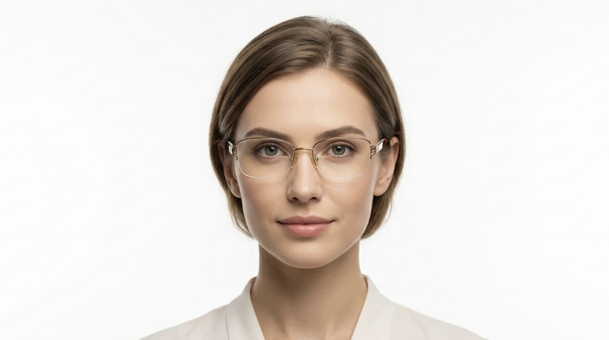 This semi-rimless (half-rim) frame features a refined rectangular silhouette that offers a clean, unobstructed view. The top bar is crafted from a polished champagne-gold metal, providing a luxurious and lightweight feel. The minimalist bottom edge gives the glasses a modern "floating lens" look, making them less heavy on the face than full-rimmed alternatives.