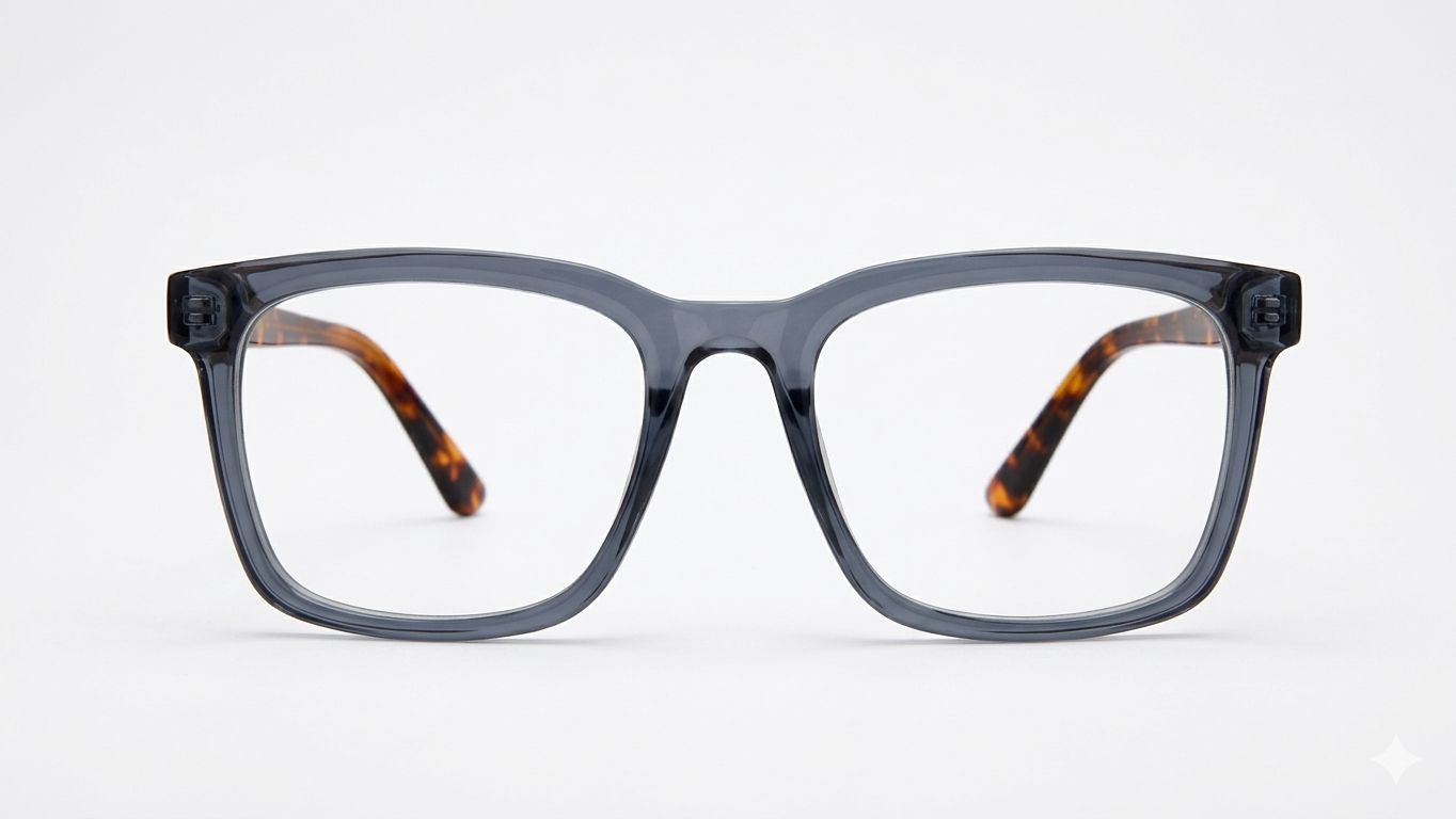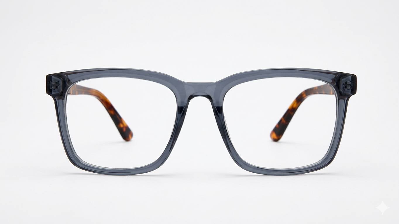 Premium Unisex Square Spectacle Frames – Translucent Grey with Tortoise Shell Temples