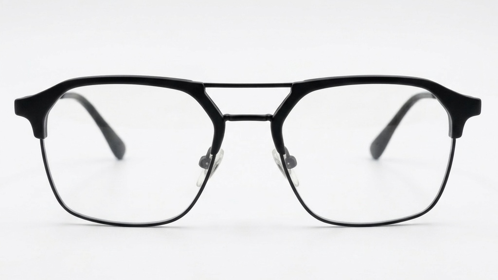 Upgrade your everyday look with these sophisticated Navigator-style frames. Crafted for the modern man, these glasses blend a bold geometric top bar with a sleek, minimalist lower rim.