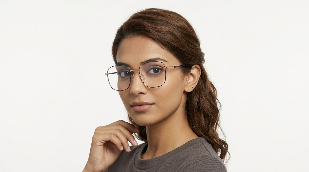 Elegant Rose Gold and Black Square-Rim Eyeglasses