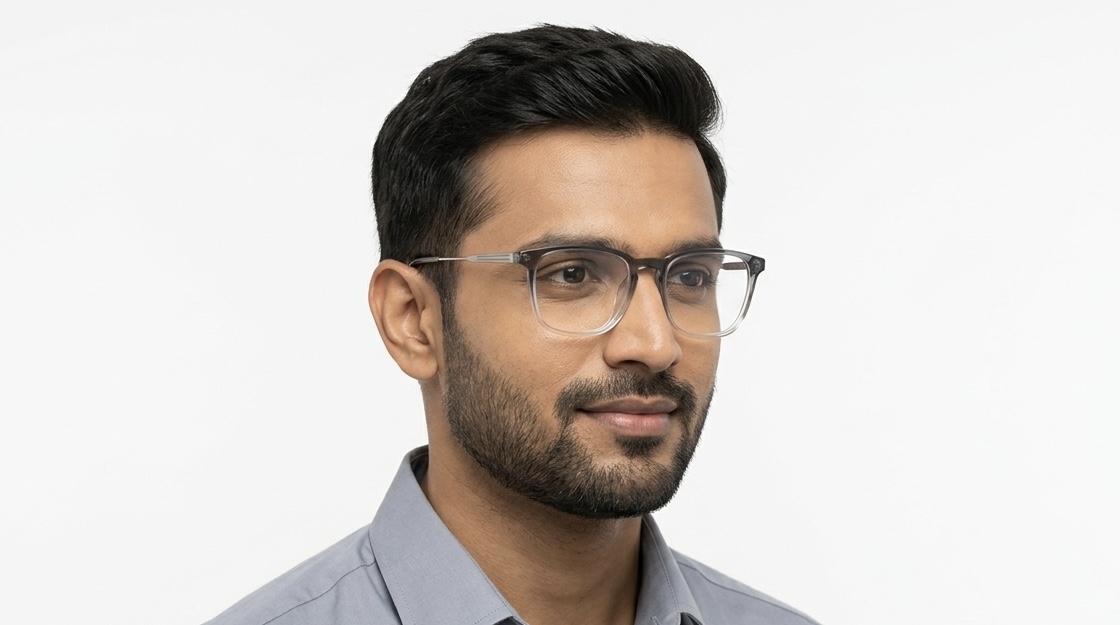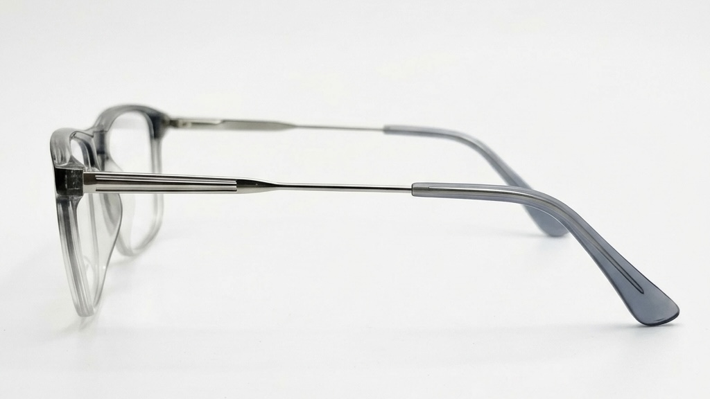 Elevate your everyday look with these sophisticated rectangular frames, designed for the modern individual who values both style and substance. Featuring a unique dual-tone gradient finish, these glasses transition seamlessly from a bold, smoky charcoal grey at the brow to a crystal-clear transparency at the base. This "fade" effect softens the look on the face while maintaining a strong, professional silhouette.