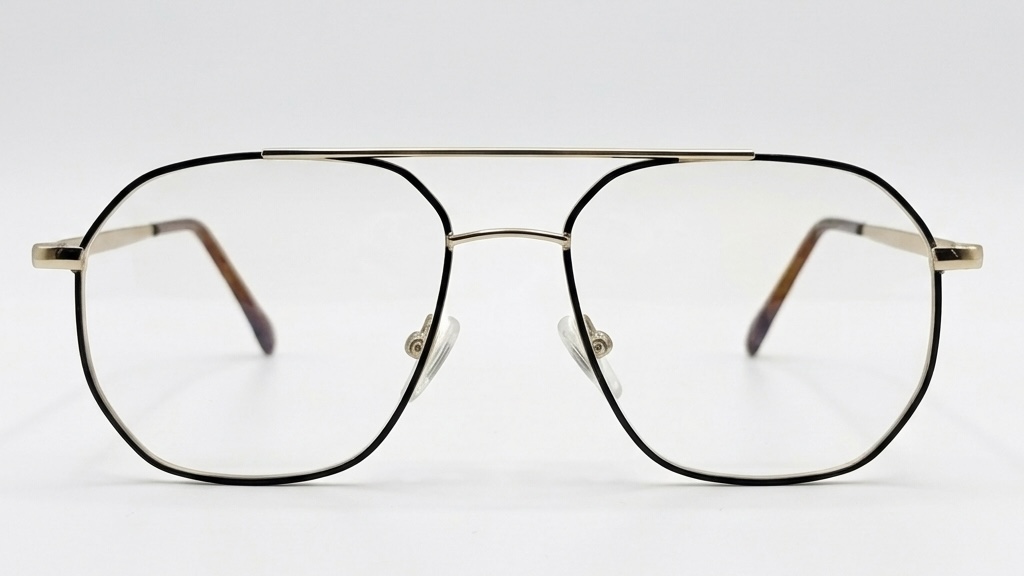 Timeless Elegance: Geometric Aviator Gold & Black Eyeglasses