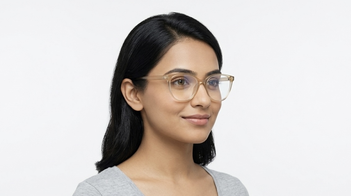 Champagne Elegance: Minimalist Cat-Eye Blue-Cut Frames